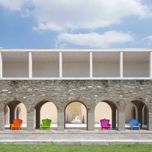 Riedizione non marcata della celebre seduta ideata da Eero Aarnio negli anni ’60. L’autore amava definire la sua creazione “la stanza nella stanza” (the room within the room). La ball chair infatti definisce, per mezzo della forma geometrica più semplice, la sfera, una spazialità intima ed ovattata, riducendo di molto il rumore dell’ambiente circostante.