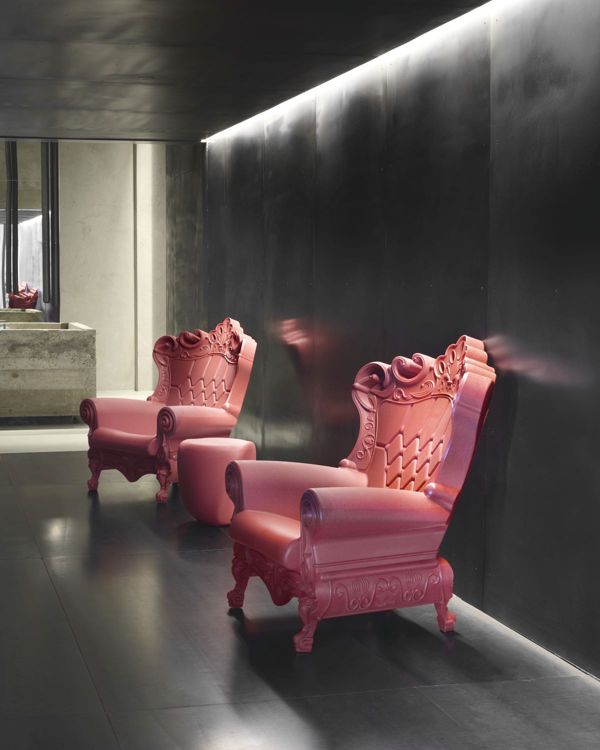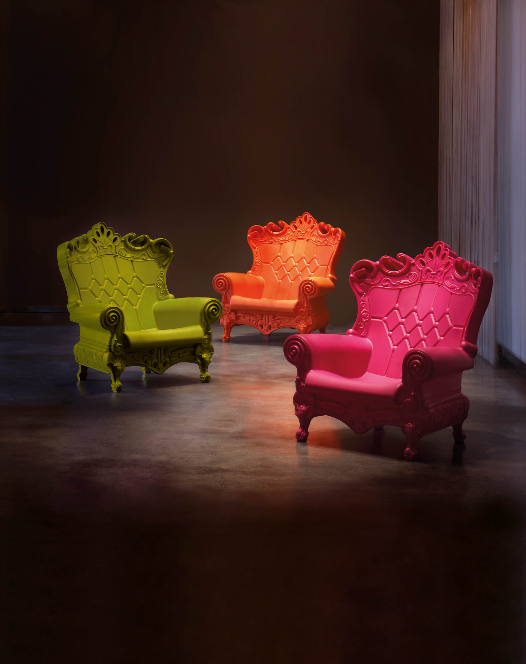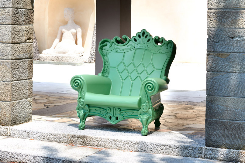 Una poltrona in polietilene dal design unico, capace di attirare l’intera attenzione su di sè e di incoronare chiunque ci si sieda sopra. Con il suo stile ricco di dettagli tipico barocco, ma con tutta la contemporaneità del materiale con cui è realizzata, Queen of Love è elegante, sprezzante e pop. Per questo è diventata un oggetto del desiderio di contract, privati, ma anche per allestimenti per la televisione, lo sport e per eventi di fama internazionale.