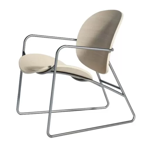 Sedia con scocca in polipropilene disponibile in vari colori; base con crociera verniciata nero e piedi in massello di faggio naturale.