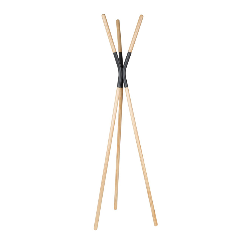 Pinnacle, Zuiver design. Appendiabiti da terra in legno massiccio, laccato naturale e giunto in acciaio verniciato a polvere grigio. Carico massimo di peso 23 kg, dimensioni 56x59x176 cm.
